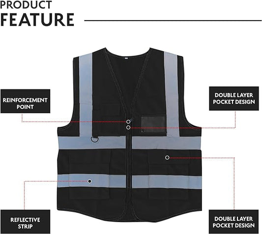 Vasego - Hi Visibility Executive Reflective Safety Vest in Black