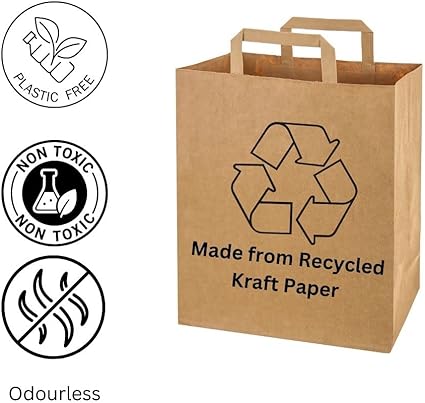 Wraplyft - Brown Flat Handle Paper Carrier Bag in S, M, L & XL