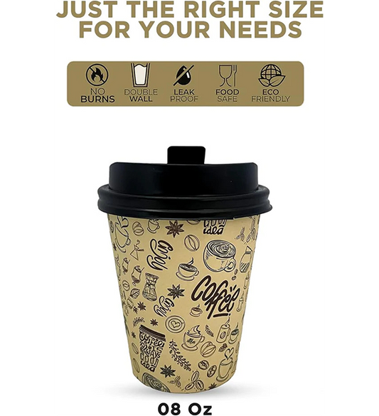 Wraplyft - 8 oz Single Wall Disposable Coffee Cups Pack of 100 & 200